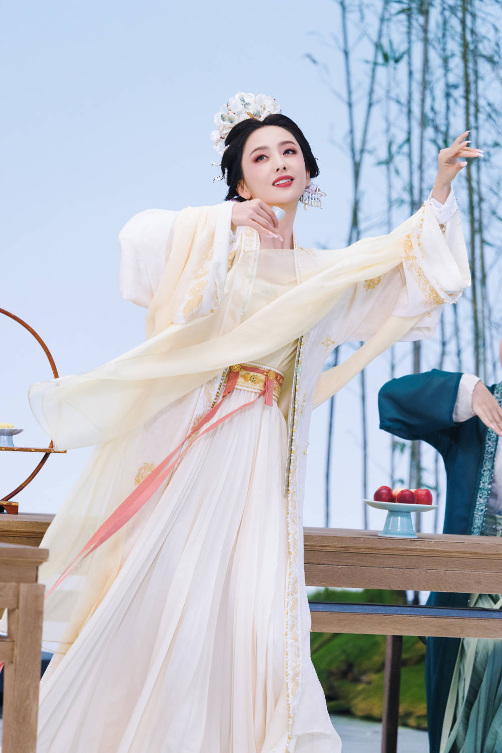 佟丽娅一袭渐变绯红舞衣登场时,弹幕瞬间被“美到失语”刷屏。她化身的牡丹仙子既有“云想衣裳花想容”的雍容,又不失“唯有牡丹真国色”的风骨,旋转间裙摆绽放如花瓣舒展,配合全息投影营造的漫天飞花,仿佛从《捣练图》中走出的唐代仕女活了过来。而杨丽萍设计的“鹤舞”更暗藏巧思——舞者足尖轻点如鹤喙啄食,羽翼般的水袖在灯光下泛着珠光,与牡丹的华贵形成刚柔并济的视觉交响。正如网友感叹:“这哪里是跳舞,分明是把《簪花仕女图》跳成𱅀D电影!”
